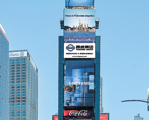 近年來,在通威品牌的跨越式發展下,短短三年時間,通威先后11次獲央視《新聞聯播》、《晚間新聞》報道,展示了通威在綠色雙主業所取得的巨大成就。在黨的十九大開幕當天,通威品牌亮相紐約時代廣場,讓全球見證中國綠色發展,彰顯了通威的足夠底氣和充分自信。