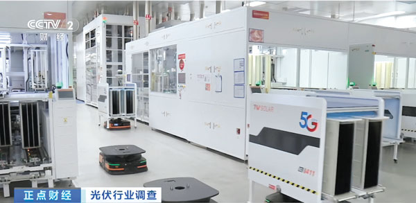 CCTV-2《正點財經》欄目播出通威太陽能智能制造車間畫面