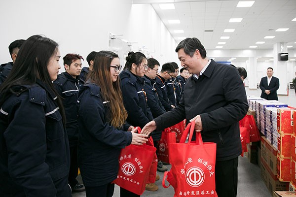 南通市開發區黨工委副書記曹海鋒一行 蒞臨通威太陽能科技開展春節送溫暖活動