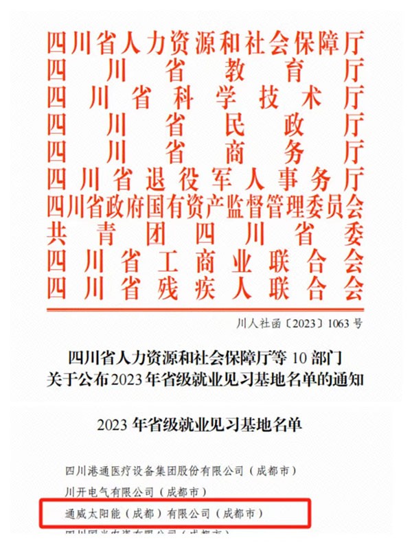 通威太陽能雙流基地獲評“2023年省級就業見習基地”