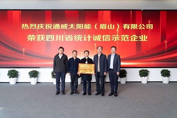 通威太陽(yáng)能眉山基地榮獲“四川省統(tǒng)計(jì)誠(chéng)信示范企業(yè)”榮譽(yù)稱(chēng)號(hào)