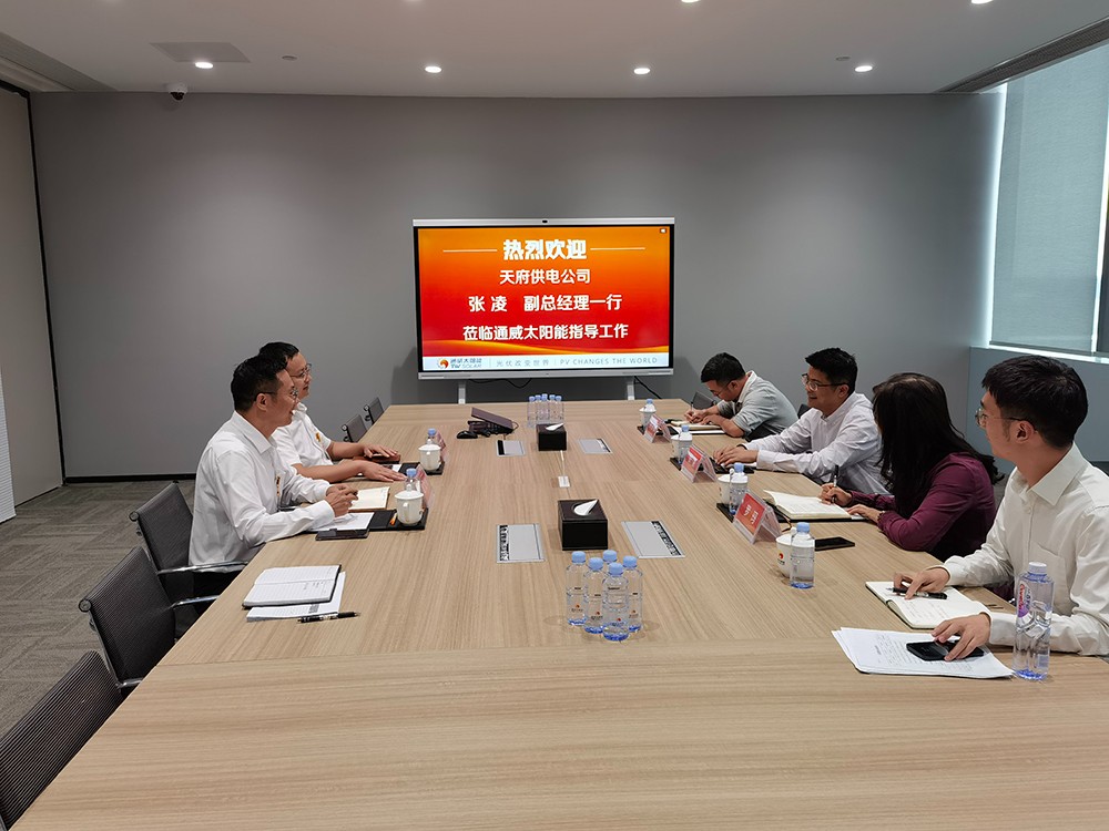 國網天府供電公司副總經理張凌一行蒞臨通威太陽能雙流基地交流座談