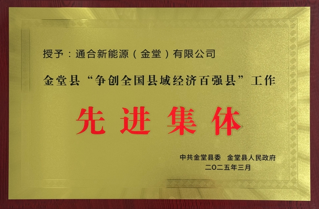 通合新能源(金堂)有限公司榮獲金堂縣“爭(zhēng)創(chuàng)全國(guó)縣域經(jīng)濟(jì)百?gòu)?qiáng)縣”工作先進(jìn)集體