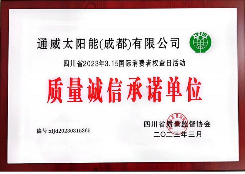 ? 通威太陽能雙流基地榮獲2023年“四川省質量誠信承諾單位”稱號