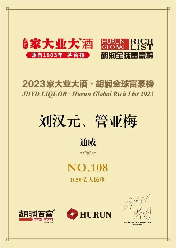 通威集團(tuán)董事局劉漢元主席榮列2023胡潤(rùn)全球富豪榜