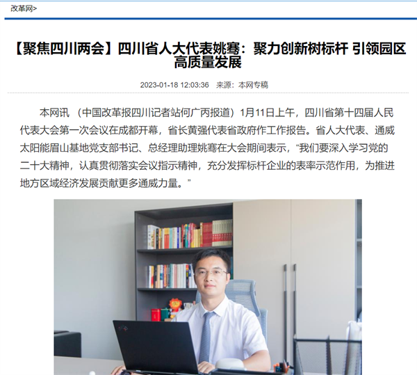 《中國改革報》聚焦四川省人大代表姚騫:帶領(lǐng)通威太陽能眉山基地實(shí)現(xiàn)高質(zhì)量發(fā)展