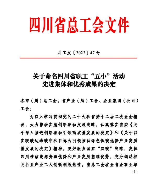 通威太陽能金堂基地榮獲四川省職工“五小”活動先進集體榮譽稱號