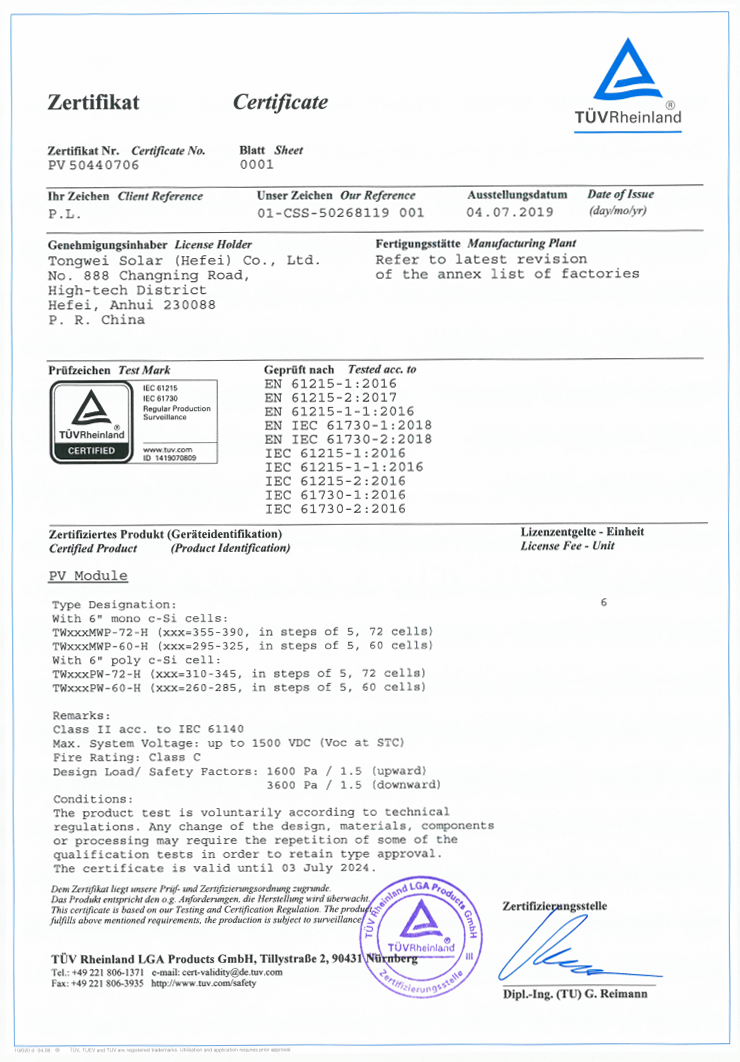 通威太陽能常規組件榮獲IEC新標準認證證書