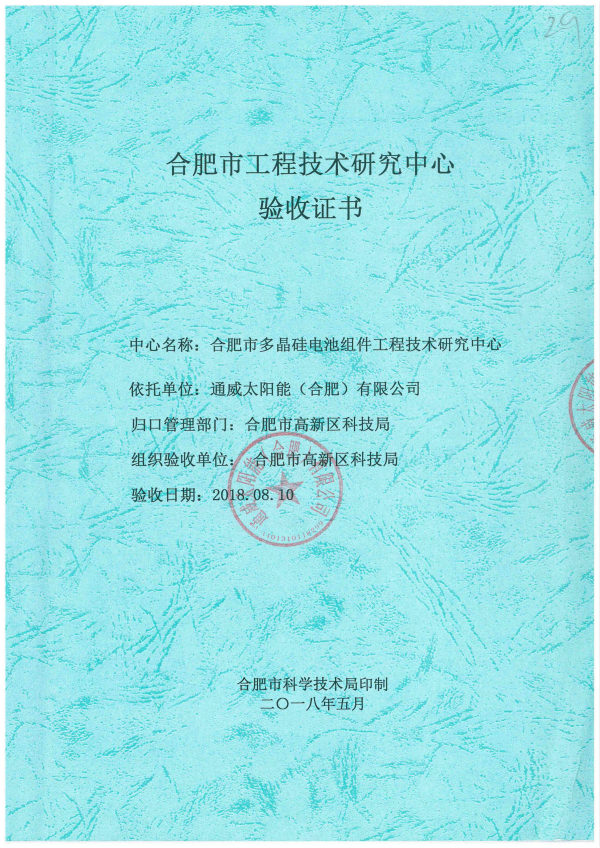 通威太陽能合肥公司順利通過市級工程技術(shù)研究中心驗收