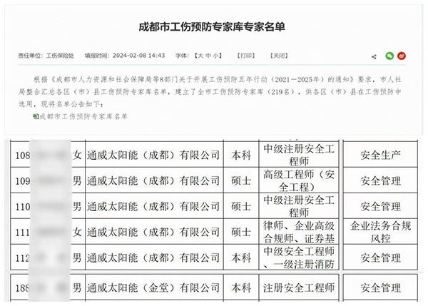 通威太陽能6名專家成功入選成都市工傷預(yù)防專家?guī)?/div>