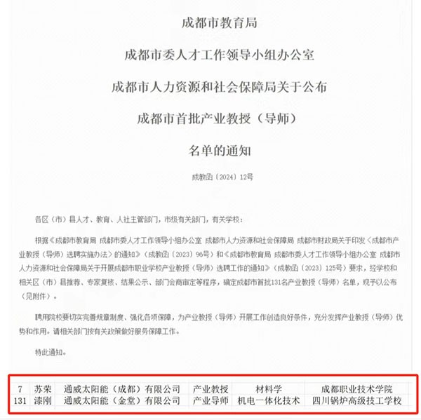 通威太陽能2名專家入選成都市首批產(chǎn)業(yè)導(dǎo)師
