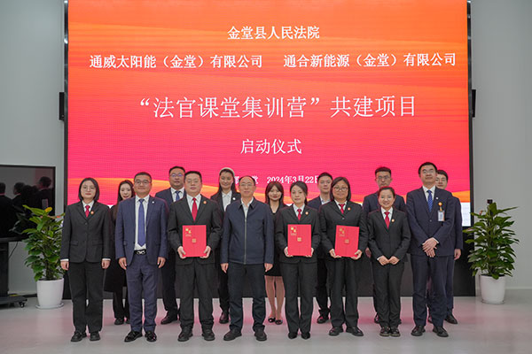 3月22日,金堂縣人民法院黨組書(shū)記、院長(zhǎng)徐文波一行先后蒞臨通合新能源、通威太陽(yáng)能金堂公司,并舉行“法官課堂集訓(xùn)營(yíng)”啟動(dòng)儀式。通合新能源總經(jīng)理助理郭寬新,通威太陽(yáng)能金堂公司總經(jīng)理助理龐三鳳及通威太陽(yáng)能相關(guān)業(yè)務(wù)團(tuán)隊(duì)參加本次會(huì)議。
