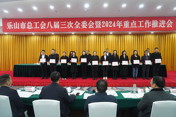 3月13日,樂山市總工會八屆三次全委會暨2024年重點工作推進會召開。會議傳達學習省總工會十五屆二次全委會精神,安排2024年工作任務,樂山市委常委、市總工會主席、市直機關工委書記譚焰出席會議并講話。會上對2023年度全市工會信息工作先進單位和個人進行表彰,永祥股份工會委員會榮獲信息工作先進單位,永祥股份工會副主席程鳳濤榮獲信息工作先進個人。