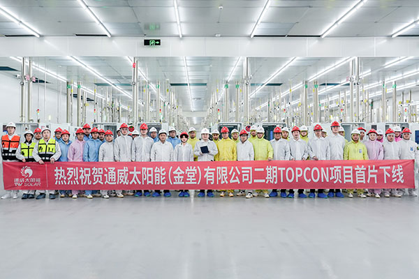 通威太陽能金堂基地二期TOPcon項目首片電池片下線現(xiàn)場