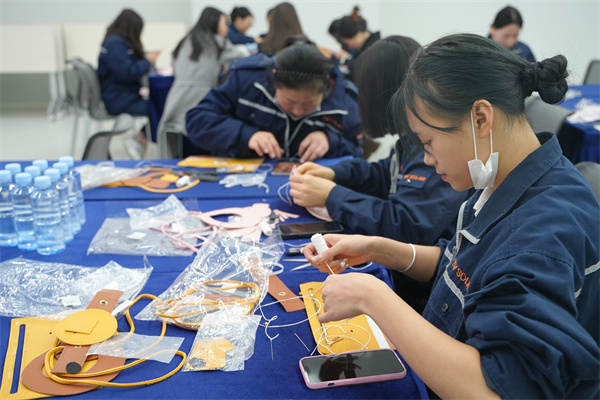 在金堂基地,各位工作人員向大家分發(fā)手工素材包并詳細講解制作流程。隨后,員工一邊穿針引線,一邊交流制作心得,歡聲笑語不絕于耳。經(jīng)過一個小時的精心制作,可愛的海綿寶寶就呈現(xiàn)在了大家的手中。