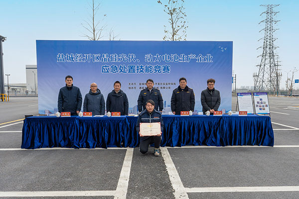 近日,由鹽城經(jīng)濟(jì)技術(shù)開發(fā)區(qū)安監(jiān)環(huán)保局主辦,通威太陽(yáng)能科技鹽城基地協(xié)辦的應(yīng)急處置技能競(jìng)賽在鹽城基地舉行。本次比賽由經(jīng)濟(jì)技術(shù)開發(fā)區(qū)晶硅光伏和動(dòng)力電池22家生產(chǎn)企業(yè)共計(jì)100余人參賽。