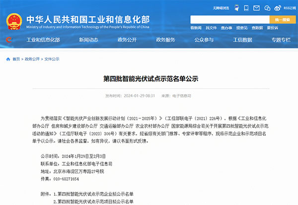 1月29日,工業(yè)和信息化部在官網(wǎng)發(fā)布了《第四批智能光伏試點(diǎn)示范名單公示》,作為全球光伏行業(yè)智能制造樣板和示范企業(yè),通威太陽(yáng)能金堂成功入列“智能光伏試點(diǎn)示范企業(yè)”公示名單,公示時(shí)間為2024年1月29日至2024年2月3日。
