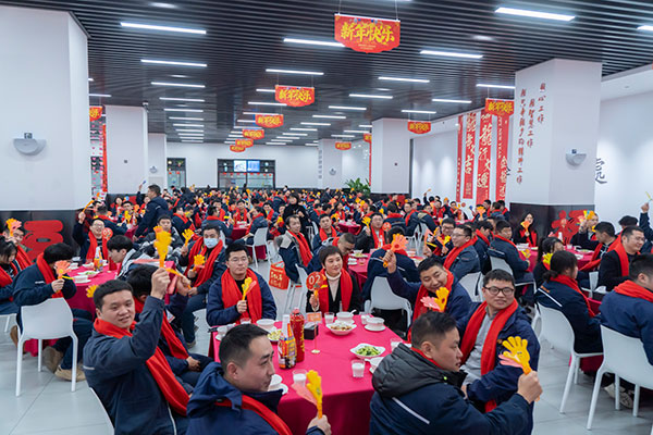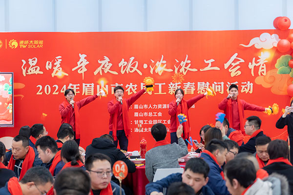 在新春佳節(jié)來臨之際,為深入貫徹落實(shí)中國工會(huì)十八大和省工會(huì)十五大精神,扎實(shí)做好農(nóng)民工服務(wù)保障工作,切實(shí)增強(qiáng)農(nóng)民工的獲得感和幸福感。2月1日,由眉山市人力資源和社會(huì)保障局、眉山市總工會(huì)主辦,甘眉工業(yè)園區(qū)工會(huì)聯(lián)合會(huì)協(xié)辦,通威太陽能眉山基地承辦的“溫暖年夜飯·濃濃工會(huì)情”2024年眉山市農(nóng)民工新春慰問活動(dòng)在眉山基地暖心舉行。眉山市總工會(huì)黨組書記、常務(wù)副主席王艷,眉山市人社局黨組成員、市就業(yè)局局長向陽,通威太陽能眉山基地總經(jīng)理助理姚騫,眉山基地工會(huì)主席、副主席及相關(guān)部門負(fù)責(zé)人以及200名基地農(nóng)民工代表出席了本次活動(dòng)。