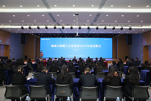 12月26日,通威太陽能人行法體系順利召開2023年度述職會,通威太陽能總經理周華,通威股份人力資源總監易繼成,通威股份行政總監馮暢,通威股份人力資源部部長王耀頤,通威股份行政部部長助理徐小君,通威太陽能人行法體系全體干部及各基地員工參與會議。