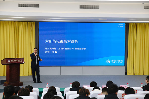 科技創(chuàng)新、科技普及是實(shí)現(xiàn)創(chuàng)新發(fā)展的兩翼,科技人才是創(chuàng)新發(fā)展的強(qiáng)大動(dòng)力。為深入貫徹落實(shí)黨的二十大精神和習(xí)近平總書記來(lái)川視察重要指示精神,弘揚(yáng)科學(xué)精神,傳播科學(xué)思想,普及科學(xué)知識(shí),促進(jìn)科技人才的成長(zhǎng)和提高,促進(jìn)學(xué)校工作與社會(huì)發(fā)展的共同進(jìn)步,12月14日,眉山市2023年“最美科技工作者”學(xué)術(shù)交流會(huì)在眉山職業(yè)技術(shù)學(xué)院隆重舉行,眉山市科學(xué)技術(shù)協(xié)會(huì)副主席夏放主持,通威太陽(yáng)能眉山基地總經(jīng)理助理、黨總支書記姚騫受邀作為眉山市首屆“最美科技工作者”代表攜眉山基地技術(shù)骨干與莘莘學(xué)子授課交流,學(xué)校師生近300人參與其中。
