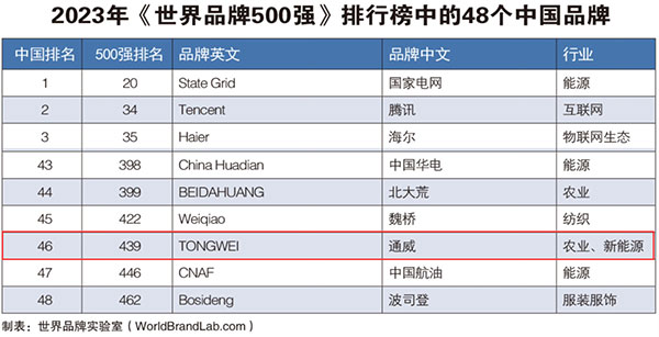 通威榮登2023年《世界品牌500強(qiáng)》榜單
