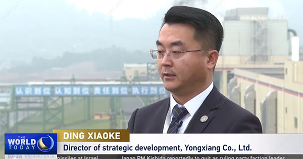中國(guó)國(guó)際電視臺(tái)記者在永祥新能源廠(chǎng)區(qū)現(xiàn)場(chǎng)報(bào)道