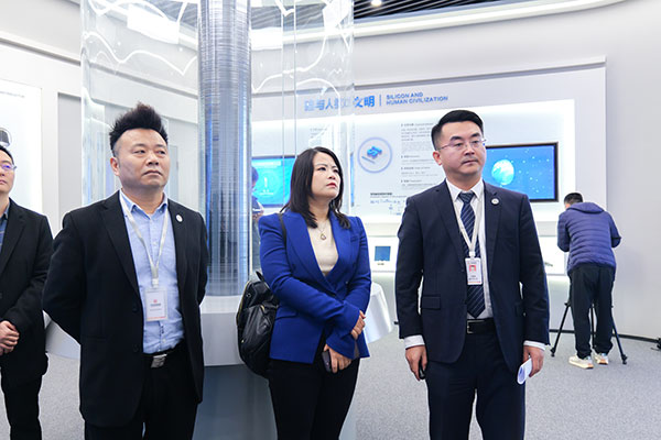 在數字體驗中心,記者詳細詢問永祥的發展歷程和生產運行情況,了解企業技術創新、研發投入、成本控制、能耗指數等情況,并對晶硅光伏行業、晶硅產品情況進行全面了解。丁總回顧了以永祥為代表的晶硅企業在行業困境中矢志不渝進行技術研發、成功崛起的過程,表示光伏能源作為最有可能成為人類可以永續使用的清潔能源,取之不盡用之不竭,對環境資源最友好,必將成為實現碳達峰、碳中和進程的主力軍。一路走來,永祥始終堅持綠色工廠生產綠色產品的環保理念,不斷進行技術迭代升級,在工藝技術、設備、裝置等核心領域攻關,公司自主研發的“永祥法”目前已經應用到第八代,研發儲備到第九代,產品關鍵性雜質元素純度達11個9,全面滿足P型和N型單晶需求。同時以技術驅動成本降低,公司各項指標均處于行業先進水平,實現了高純晶硅中國“智造”。