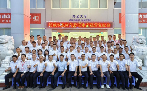 海外片區,作為通威農發全球布局的重點區域,從2007年在海外建立第一家分公司——越南通威以來,到目前,已建立起8家分、子公司,象征著通威向新征程、新目標的大跨進。此次出行,郭總帶領總部管理團隊先后視察了越南天邦、海陽通威、前江通威等,了解了各公司的生產、經營現狀,并在越南通威開展海外片區營銷年會。