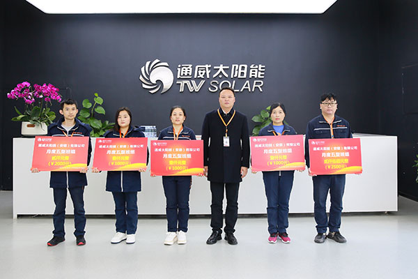 為全面提升一線(xiàn)班組的凝聚力、戰(zhàn)斗力,建設(shè)技能型、效益型、管理型、創(chuàng)新型、和諧型的五型太陽(yáng)能制造團(tuán)隊(duì),同時(shí)為培養(yǎng)標(biāo)桿,樹(shù)立典范,激勵(lì)全體班組不斷進(jìn)步、不斷超越,持續(xù)營(yíng)造比、學(xué)、趕、幫、超的良好團(tuán)隊(duì)氛圍。11月,通威太陽(yáng)能成功開(kāi)展10月月度五型班組表彰活動(dòng),通威太陽(yáng)能各基地負(fù)責(zé)人出席活動(dòng)并為月度五型班組獲獎(jiǎng)團(tuán)隊(duì)進(jìn)行頒獎(jiǎng)表彰。