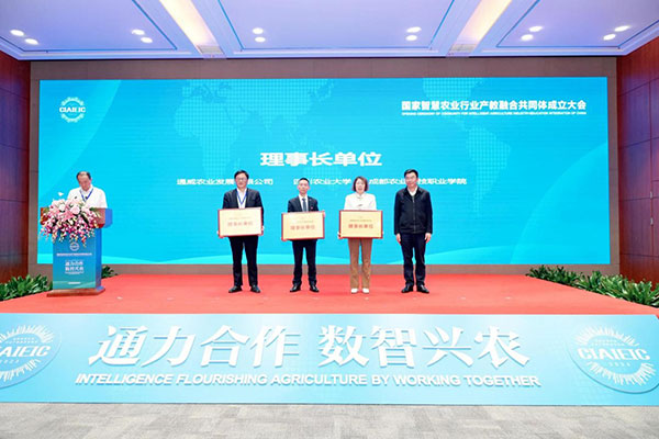 四川農(nóng)業(yè)大學(xué)鄉(xiāng)村振興學(xué)院院長(zhǎng)、成都現(xiàn)代農(nóng)業(yè)產(chǎn)研院董事長(zhǎng)周倫理發(fā)起共同體建設(shè)倡議。國(guó)家智慧農(nóng)業(yè)行業(yè)產(chǎn)教融合共同體將按照“平等、合作、共贏”的原則,堅(jiān)持公益開(kāi)放包容,共享行業(yè)發(fā)展信息、研制行業(yè)發(fā)展標(biāo)準(zhǔn)、聯(lián)合開(kāi)展人才培養(yǎng)、協(xié)同開(kāi)展技術(shù)攻關(guān),促進(jìn)產(chǎn)教深度融合。成都市教育局二級(jí)巡視員何榮、四川省教育廳職業(yè)教育處二級(jí)調(diào)研員蒲元、四川省農(nóng)業(yè)農(nóng)村廳水產(chǎn)局副局長(zhǎng)羅本彬表示,行業(yè)產(chǎn)教融合共同體建設(shè)是深化現(xiàn)代職業(yè)教育體系改革的關(guān)鍵任務(wù),是系統(tǒng)推進(jìn)教育、科技、人才一體化發(fā)展的重大創(chuàng)新舉措,希望共同體成立后,主動(dòng)對(duì)接行業(yè)產(chǎn)業(yè)發(fā)展需要,在農(nóng)業(yè)生產(chǎn)數(shù)字化、標(biāo)準(zhǔn)化、智能農(nóng)機(jī)裝備、農(nóng)業(yè)信息化等核心技術(shù)方面實(shí)現(xiàn)突破;搶抓智能產(chǎn)業(yè)、數(shù)字經(jīng)濟(jì)蓬勃發(fā)展的重大戰(zhàn)略機(jī)遇,錨定建設(shè)農(nóng)業(yè)強(qiáng)國(guó)目標(biāo),以提高農(nóng)業(yè)全要素生產(chǎn)率為主攻方向,著力推進(jìn)應(yīng)用場(chǎng)景打造、技術(shù)模式集成應(yīng)用,全方位培育壯大智慧農(nóng)業(yè)產(chǎn)業(yè),為加快農(nóng)業(yè)現(xiàn)代化提供新動(dòng)能。