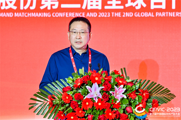 樂山市副市長張國清致辭表示,世界光伏看中國,“中國綠色硅谷”在樂山!樂山愿同大家一道擁抱光伏發(fā)展新未來,擘畫“綠色硅谷”新藍圖。一是希望圍繞全產(chǎn)業(yè)鏈,加強重大項目合作,助力延鏈強鏈、垂直整合。二是希望圍繞創(chuàng)新驅(qū)動,深化產(chǎn)學(xué)研平臺、創(chuàng)新人才等合作,攜手打造產(chǎn)業(yè)創(chuàng)新“策源地”。三是希望圍繞綠色低碳,加強節(jié)能降耗、循環(huán)利用等合作,創(chuàng)建晶硅產(chǎn)品綠色品牌。四是希望以光伏為媒,共同維護好光伏產(chǎn)業(yè)鏈、供應(yīng)鏈安全和穩(wěn)定,共同推動我國光伏產(chǎn)業(yè)綠色發(fā)展、高質(zhì)量發(fā)展、可持續(xù)發(fā)展。