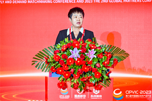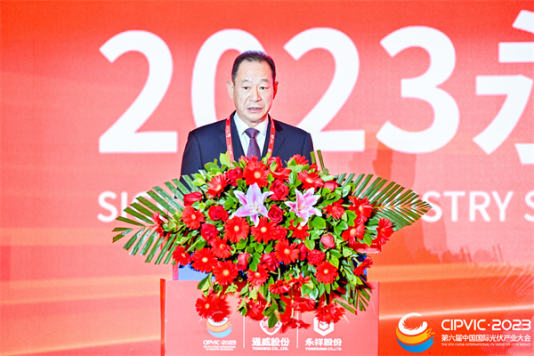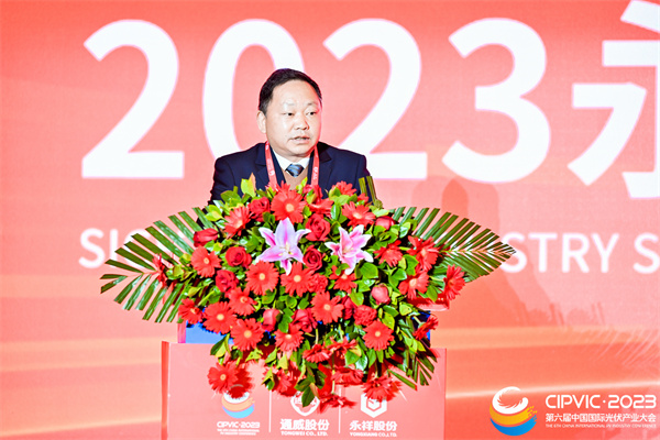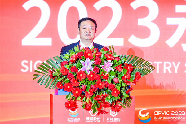 作為2023第六屆中國國際光伏產(chǎn)業(yè)大會的重磅環(huán)節(jié)之一,大會匯聚了四川省經(jīng)濟和信息化廳副廳長曾吉明,云南省保山市委副書記、市長陳銳,中國有色金屬工業(yè)協(xié)會黨委常委、副會長兼秘書長、硅業(yè)分會會長段德炳,內(nèi)蒙古包頭市人民政府黨組成員、一級巡視員王秀蓮,四川省樂山市人民政府副市長張國清,四川省廣元市副市長、蒼溪縣縣委書記張世忠,保山市人民政府秘書長張志紅,四川省蒼溪縣縣委副書記、縣長任云,四川省樂山市五通橋區(qū)委書記劉勇,內(nèi)蒙古包頭市昆都侖區(qū)委書記金永麗,四川省峨眉山市市長陳林強,云南省昌寧縣委副書記、縣長范正建,中國有色金屬工業(yè)協(xié)會硅業(yè)分會專家委副主任呂錦標,通威集團禚玉嬌總裁,通威股份董事長、CEO劉舒琪,隆基綠能事業(yè)部總裁郝凱,京運通副總裁馮震坤,晶科能源副總裁樊華,美科太陽能董事長王祿寶,高景太陽能董事長徐志群,雙良集團副總裁劉振宇,建鴻達實業(yè)集團董事長劉平建,曲靖陽光新能源董事長譚鑫,宇澤半導(dǎo)體董事長閆洪嘉,天合光能采購總監(jiān)鄭淑芬,晶澳太陽能采購總監(jiān)趙新諾,華耀光電采購總監(jiān)趙益峰,通威股份副總裁、永祥股份總經(jīng)理李斌出席大會。