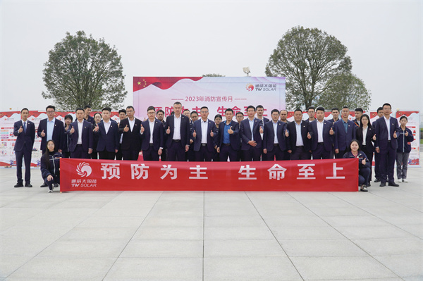 為貫徹落實《國務院安委會辦公室關于開展2023年消防宣傳月活動的通知》,10月31日-11月1日,通威太陽能(組件)各基地先后舉辦以“預防為主,生命至上”為主題的消防宣傳月啟動儀式。通威股份總裁助理、通威太陽能(合肥)有限公司總經理蕭圣義,通威太陽能(鹽城)有限公司副總經理翟緒錦及各基地管理團隊出席本次啟動儀式。啟動儀式現場,各基地中高管團隊在桁架主題墻上簽名及合影留念,正式啟動通威太陽能(組件)消防宣傳月活動。