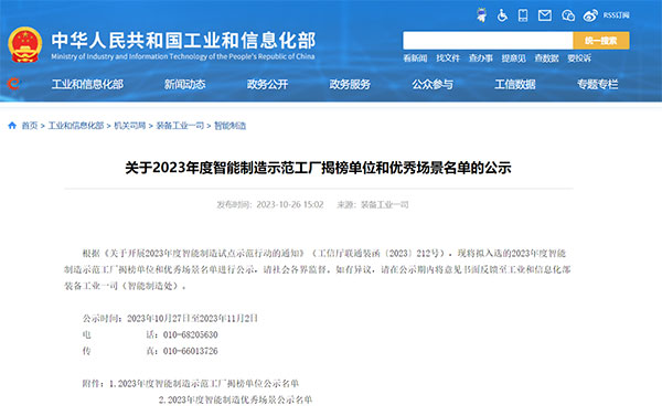 《2023年度智能制造示范工廠揭榜單位公示名單》