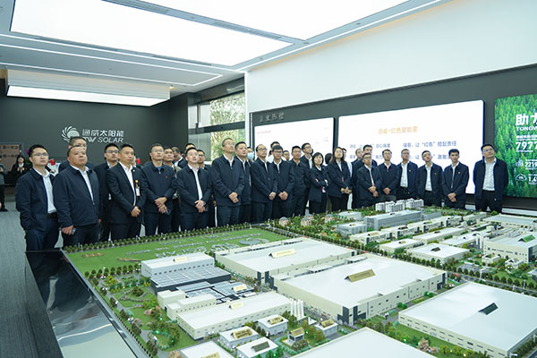 10月25日,中國東方電氣集團有限公司黨校教務長楊玉青一行到訪通威太陽能雙流基地參觀交流,通威太陽能總經理助理陳君熱情接待并陪同參觀。