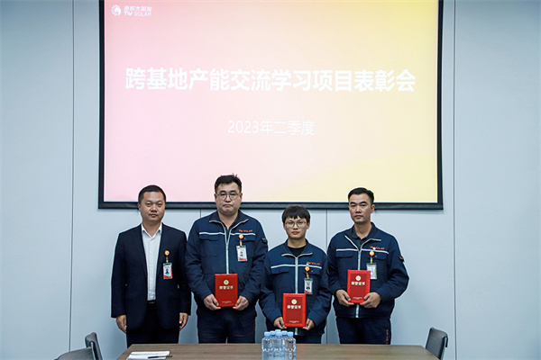 為響應通威太陽能計劃部推出的產能學習及賦能激勵辦法,提升通威太陽能整體產能利用率,通合新能源項目積極參加跨基地產能交流學習,并在此過程中積極提出提產方案,取長補短,實現產能提升。10月11日,通合新能源組織開展二季度產能學習及賦能項目行為激勵頒獎儀式,通合新能源總經理助理羅曉云出席活動并對此階段交流學習過程中表現優異,成績突出的團隊及優秀個人進行頒獎。