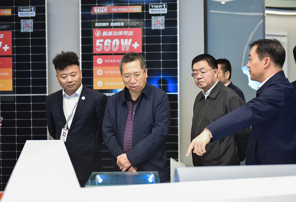 在永祥數字體驗中心,陳忠義副部長一行對永祥的發展歷程和生產運行情況進行全面了解,并詳細詢問企業在技術創新、研發投入、人才培養、基層黨組織建設等工作情況。劉勇書記詳細介紹了五通橋新型工業園區產業布局和規模,表示地方政府全力為企業營造務實高效的營商環境,打造產業鏈協同發展的良性園區生態,政企攜手,共建“中國綠色硅谷”。