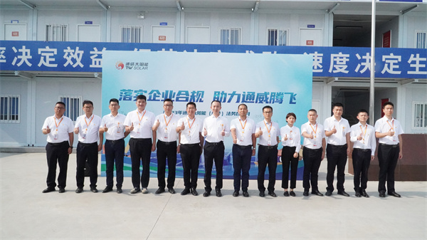 為積極響應(yīng)法治企業(yè)建設(shè),提升公司合法合規(guī)管理能力,夯實(shí)全員法治意識(shí),10月9日-10日,通威太陽能(組件)合肥、鹽城、金堂以及南通基地先后舉行以“落實(shí)企業(yè)合規(guī)、助力通威騰飛”為主題的法務(wù)合規(guī)月啟動(dòng)儀式。通威股份總裁助理、通威太陽能(合肥)有限公司總經(jīng)理蕭圣義,通威太陽能(鹽城)有限公司副總經(jīng)理翟緒錦及各基地管理團(tuán)隊(duì)出席本次啟動(dòng)儀式。啟動(dòng)儀式現(xiàn)場,各基地中高管團(tuán)隊(duì)在主題墻上簽名及合影留念,正式啟動(dòng)通威太陽能(組件)法務(wù)合規(guī)月活動(dòng)。