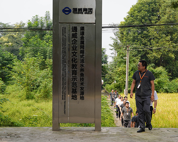 在9月15日開展的“通威文化之旅”活動中,通威股份光伏技術部46名管理人員匯聚在眉山永壽鎮,從通威發源地出發,回首通威的成長印記,感受通威文化的源頭活水。劉漢元主席創業初期,在蟆頤堰這條普普通通四五米寬的小河,開創性地發明了“渠道金屬網箱式流水養魚技術”,通過聆聽這條小河的故事,大家生動領會創業初期鍥而不舍、艱苦奮斗的精神。
