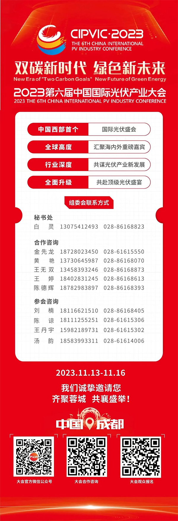 11月13—16日,第六屆中國國際光伏產(chǎn)業(yè)大會將于成都世紀城新國際會展中心隆重舉行。屆時,國內(nèi)外專家學(xué)者、知名企業(yè)、政府部門將齊聚一堂,聚焦“雙碳新時代 綠色新未來”主題,共同探討光伏產(chǎn)業(yè)發(fā)展現(xiàn)狀及趨勢。大會期間,將全球首發(fā)《2023中國光伏產(chǎn)業(yè)白皮書》(以下簡稱“《白皮書》”)。