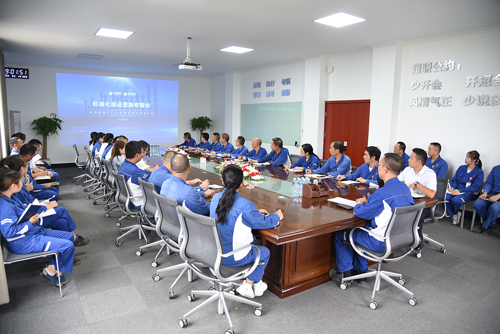 9月1日,永祥樹脂召開標準化思路專題會,公司副總經理柳志勇、安全環保總監李繼承、總經理助理文龍、標準化執行小組組長周萬江出席,各部門、車間管理人員及標準化對接人員參會。
