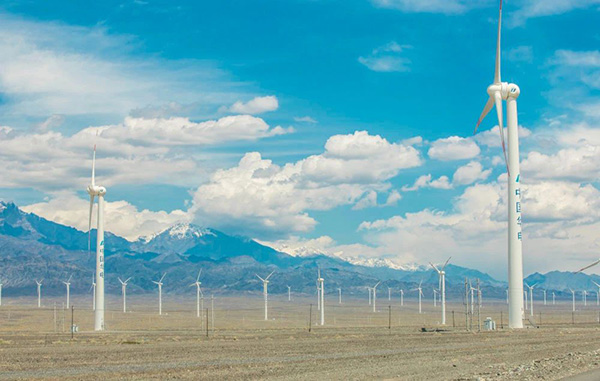 新疆烏魯木齊達(dá)坂城片區(qū)風(fēng)機(jī)與雪山交相輝映(圖片來源:新華社)