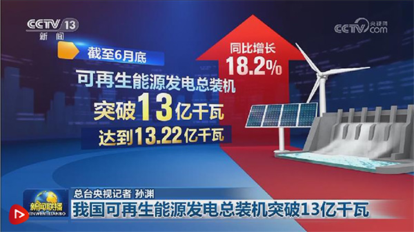 新聞聯(lián)播報(bào)道—我國(guó)可再生能源發(fā)電總裝機(jī)突破13億千瓦
