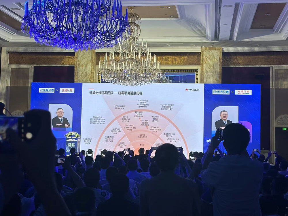 8月25日,由東吳機械和Solar zoom光儲億家聯合主辦的2023 HJT異質結&疊層產業峰會在上海召開,通威受邀參加此次論壇。通威股份光伏首席技術官邢國強博士出席會議,進行專題演講并參與圓桌論壇,向業內分享通威如何在技術革新迅速的時代抓住HJT及疊層電池技術的發展機遇并持續領先,獲得現場的強烈關注及熱烈反響。