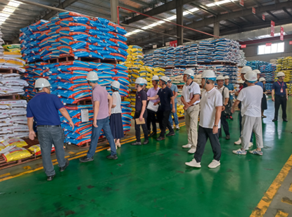 首先,蝦特料片區(qū)總經理巫勝東、陽江海壹內務總經理彭繼偉帶隊參觀陽江海壹車間,介紹通威標準化車間。