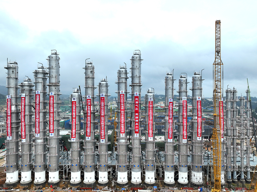精餾塔是云南通威二期20萬噸高純晶硅綠色能源項目的核心設(shè)備,共18座塔38段。自6月15日首段精餾塔開始吊裝,在杜總的領(lǐng)導(dǎo)、相關(guān)責(zé)任部門的努力、各參建單位的全力配合下,項目部緊密安排籌劃,搶時間、重質(zhì)量、抓安全,嚴(yán)格按照清單進行逐項驗收,確保精餾塔百分百潔凈安裝,塔件焊接工作一次合格率達99.5%,吊裝工作一次就位。實際經(jīng)過66天奮力沖刺,8月21日精餾裝置最后一根主塔正式吊裝成功,按照節(jié)點提前順利完成精餾裝置吊裝任務(wù)。