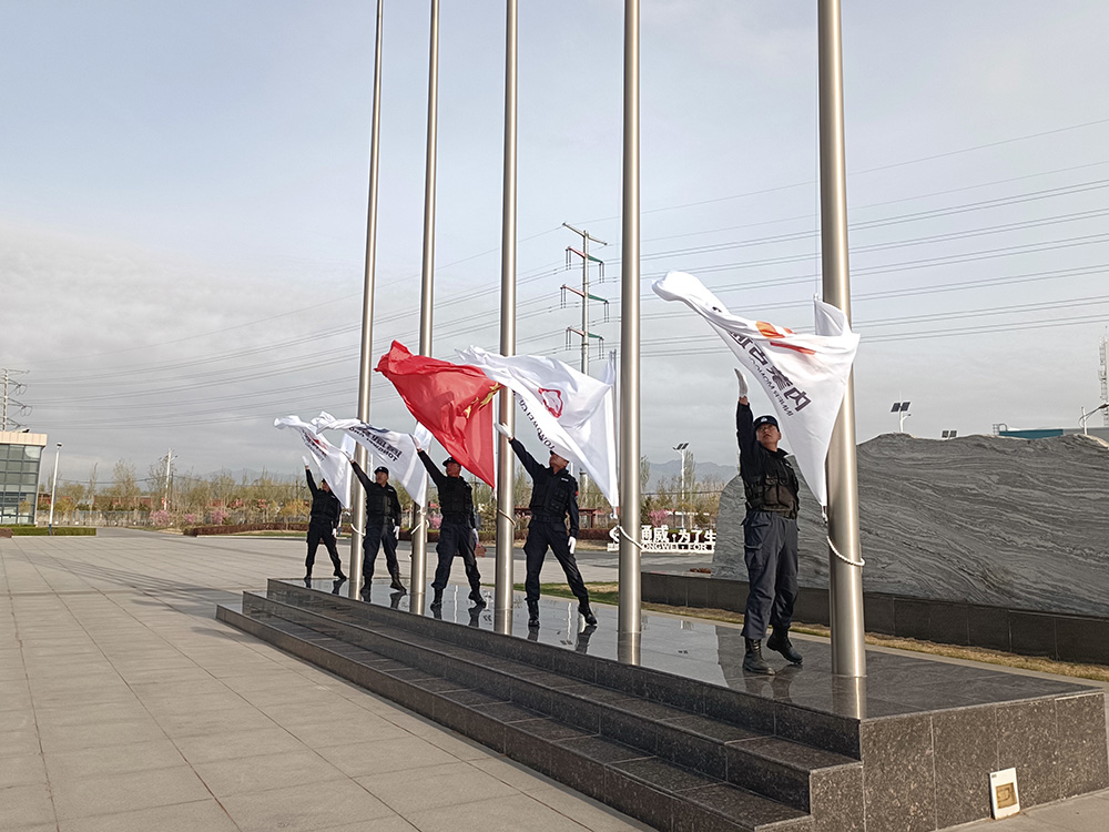 當日上午,項目升旗班團隊高標準完成了指揮部首場升旗儀式,獲得硅能源項目指揮長游書華的高度肯定。游總在儀式上對物業的前期進場表示熱烈的祝賀,對物業在指揮部建設期間的安全保障、協調配合、團隊執行等方面給與高度評價,希望物業團隊在硅能源項目建設期間,一如既往做到高標準、嚴要求,嚴格落實建設期“三零”責任目標與“十大禁令”,高效協同各部門做好新項目建設期的服務保障工作。