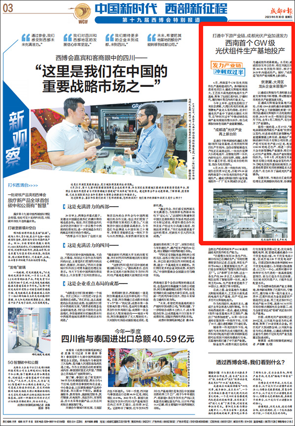 《成都日報》關注通威太陽能(組件)金堂基地投產