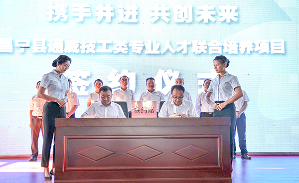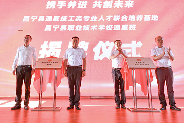 6月26日,昌寧縣通威技工類專業(yè)人才聯(lián)合培養(yǎng)項(xiàng)目簽約授牌儀式成功舉行。昌寧縣委書記楊斌斌,縣委副書記、縣長范正建,縣發(fā)改局、縣財(cái)政局、縣教體局等職能部門相關(guān)人員,永祥股份副總經(jīng)理、云南通威總經(jīng)理杜炳勝,云南通威總經(jīng)理助理閆一夫出席。