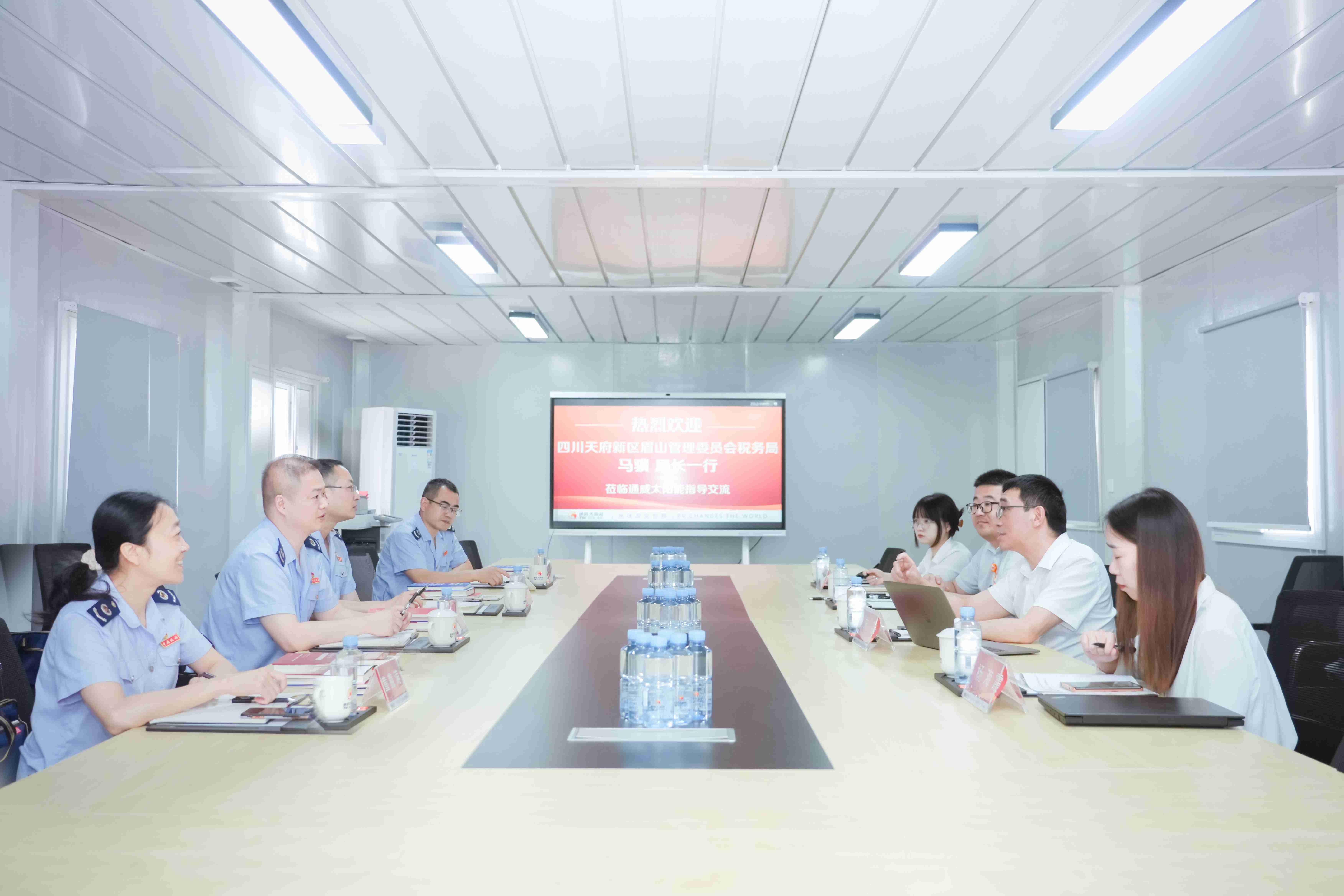 6月14日,眉山管理委員會稅務(wù)局局長馬驥一行蒞臨通威太陽能彭山基地指導(dǎo)交流,通威太陽能副總經(jīng)理宋梟攜彭山基地財(cái)務(wù)負(fù)責(zé)人熱情接待并座談。